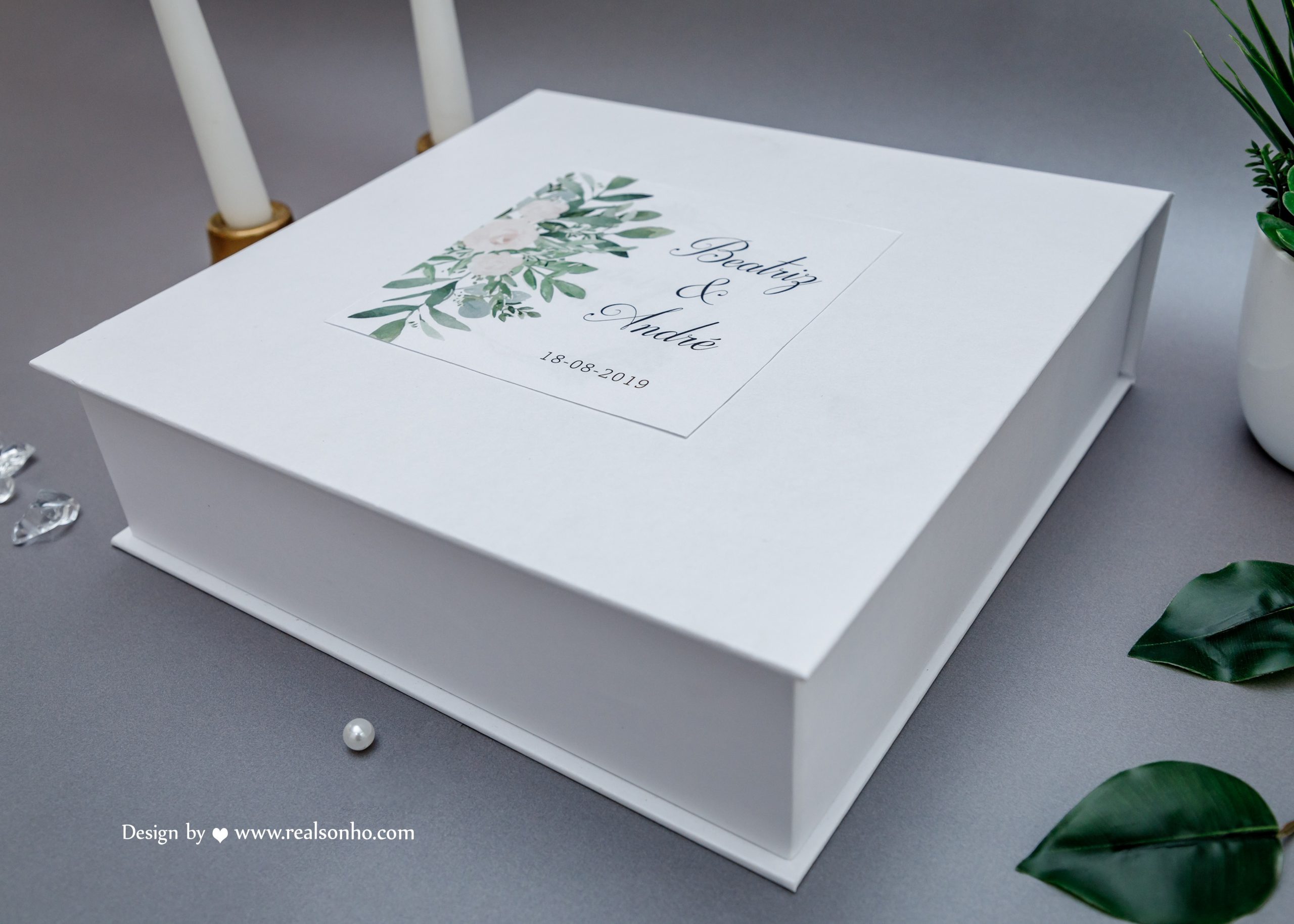 Decoração da caixa: impressão personalizada interior e exterior (o convite da imagem está com o design da Coleção Green)