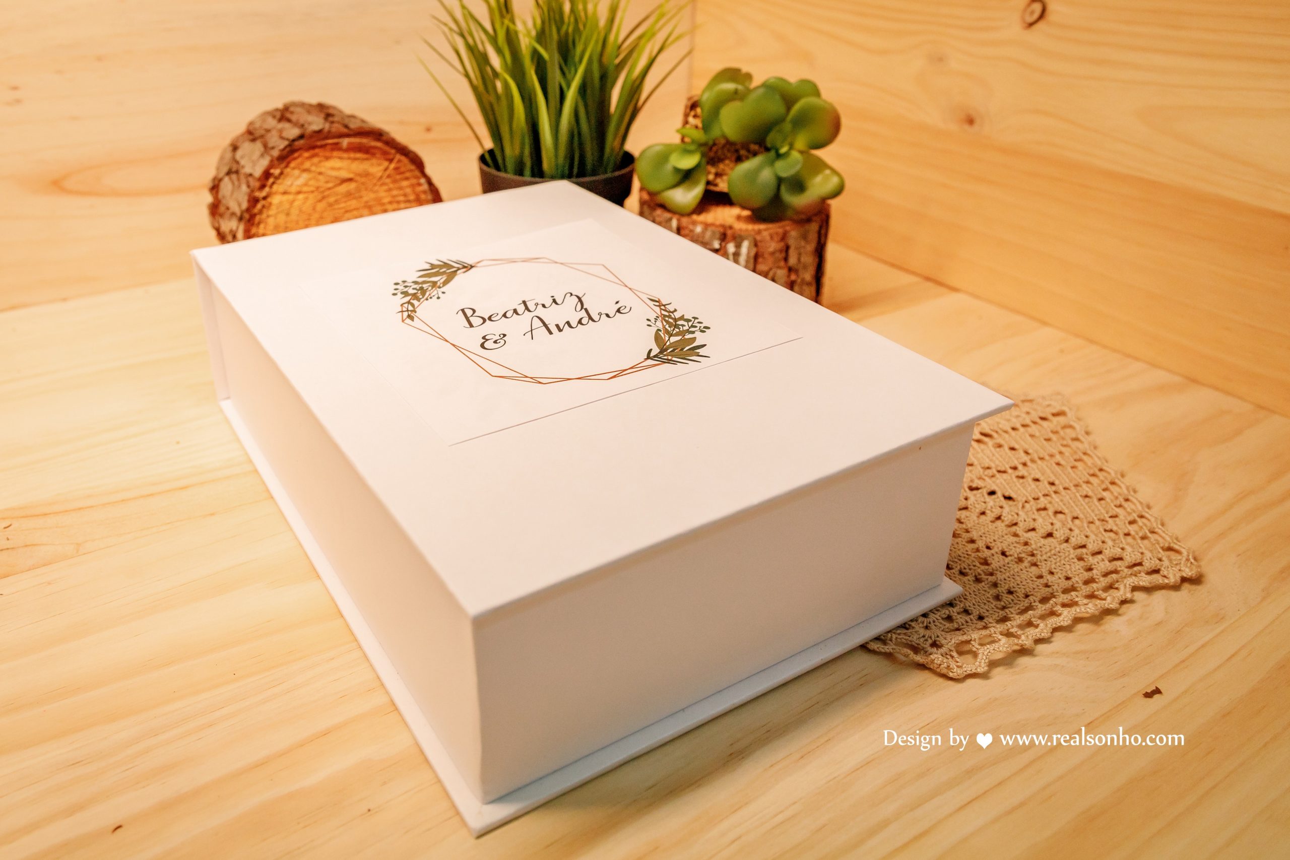 Decoração da caixa: impressão personalizada interior e exterior (o convite da imagem está com o design da Coleção Geometric)