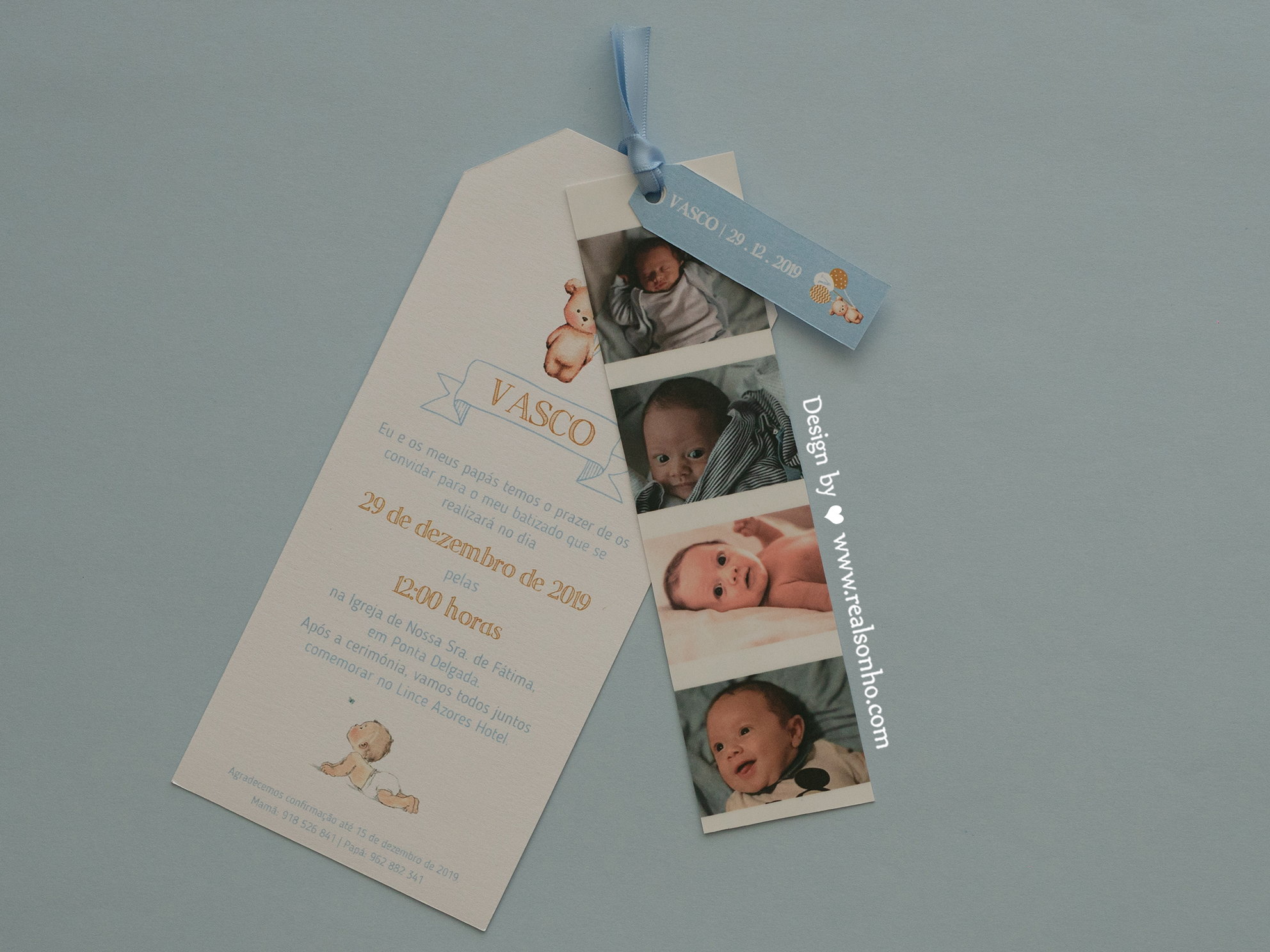 Dimensões: 9 x 19 cm (convite) 4,5 x 17 cm (fotos)
