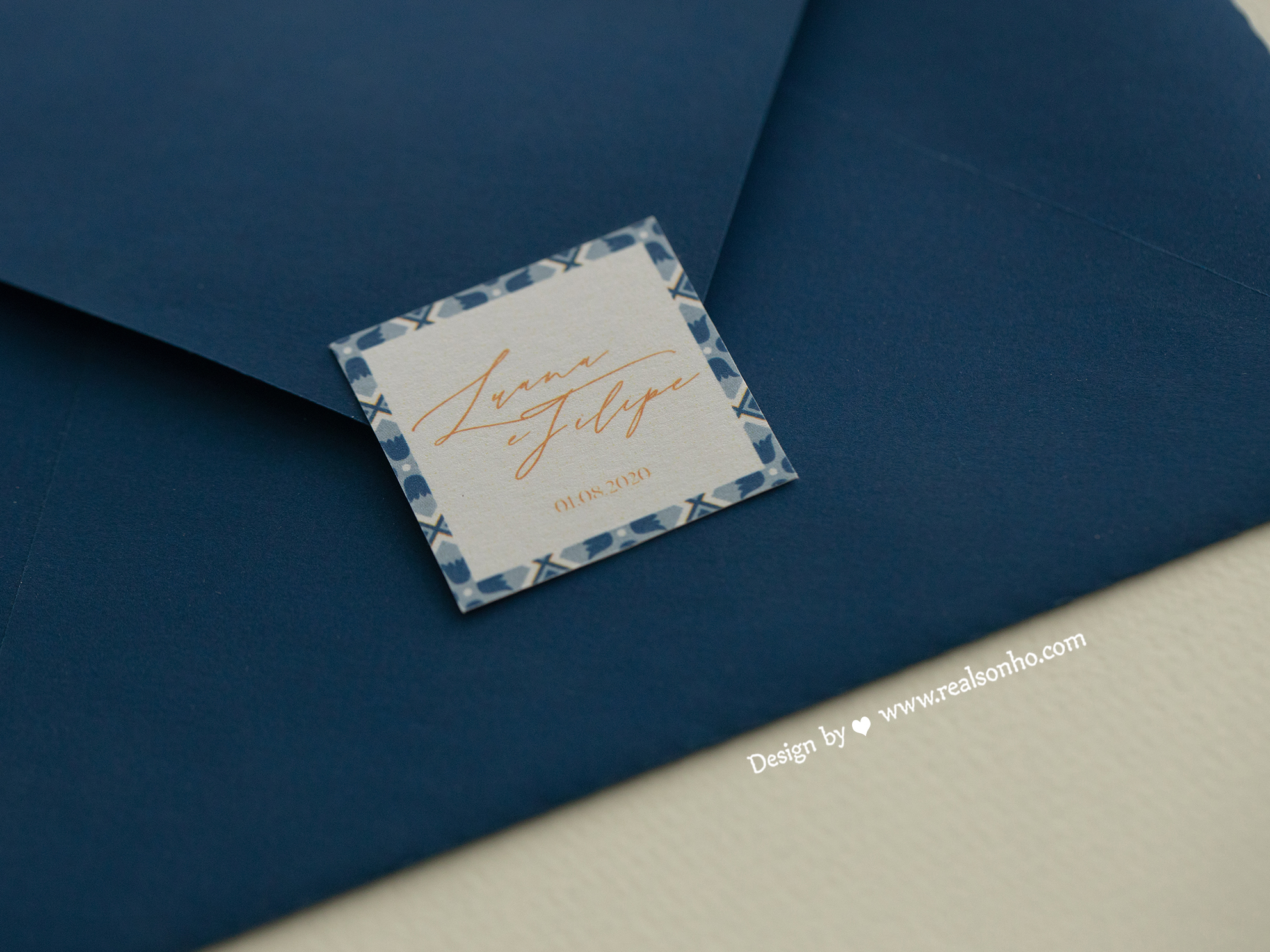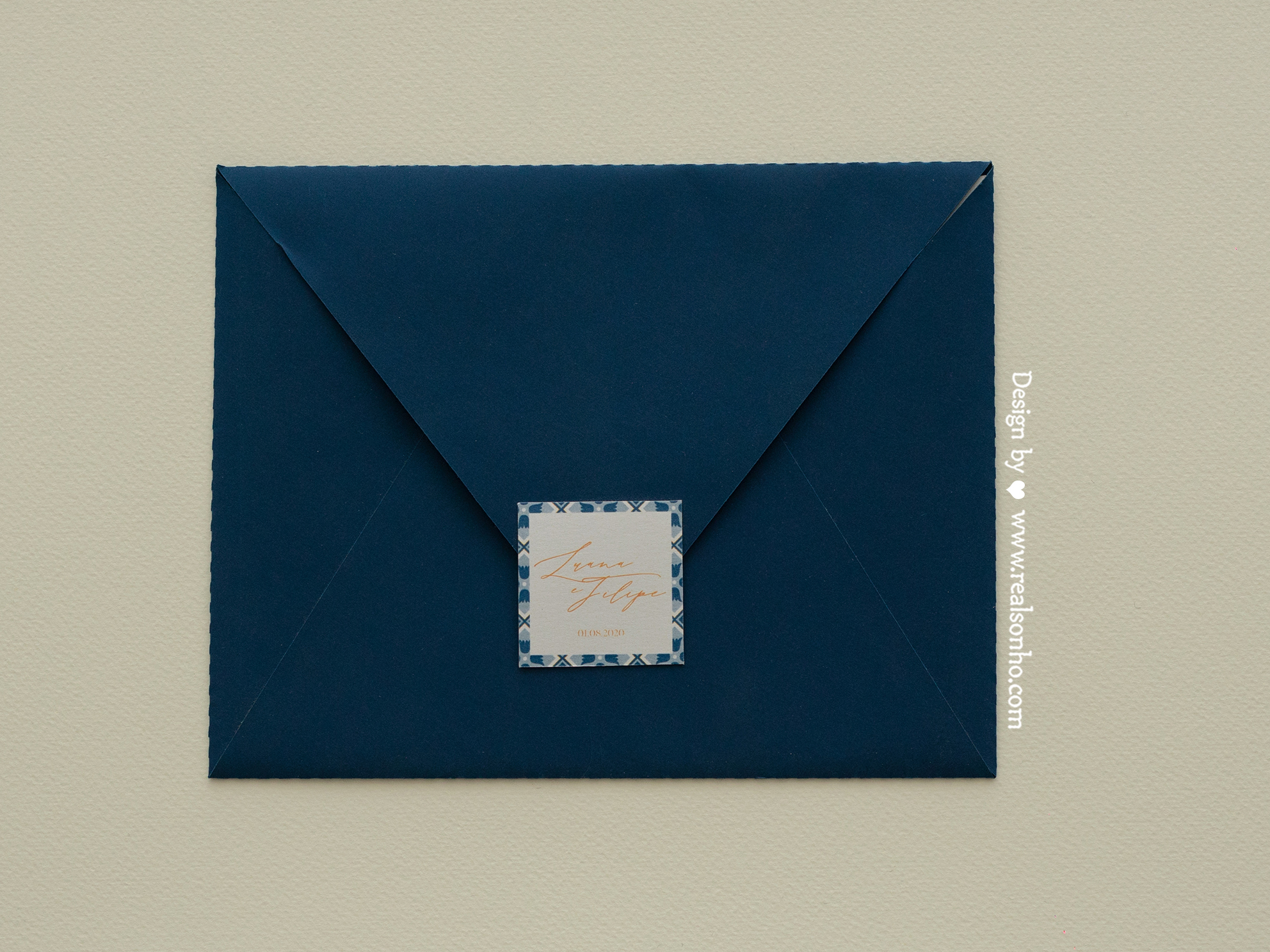 Envelope: Cor azul, gramagem 240gr (com opção de interior personalizado)