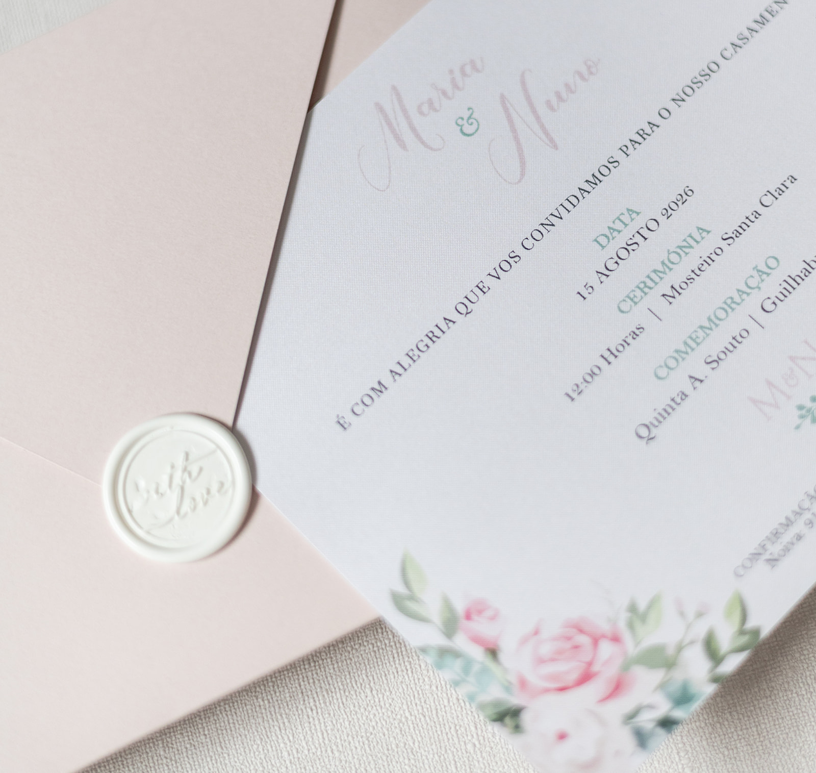 Decoração do convite: lacre dourado com frase With Love ( pode optar por qualquer desenho da nossa coleção)