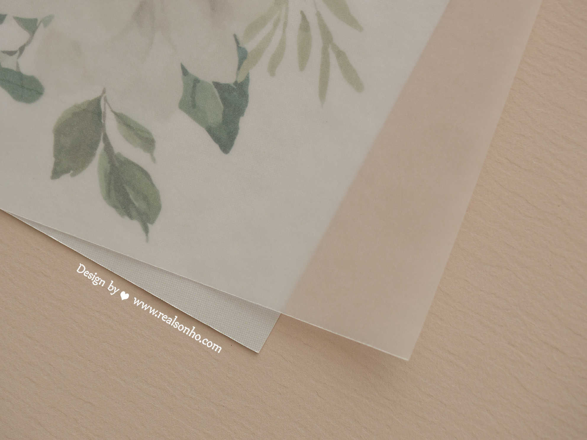 • impressão floral em papel branco, gramagem 250 gr (parte de trás)