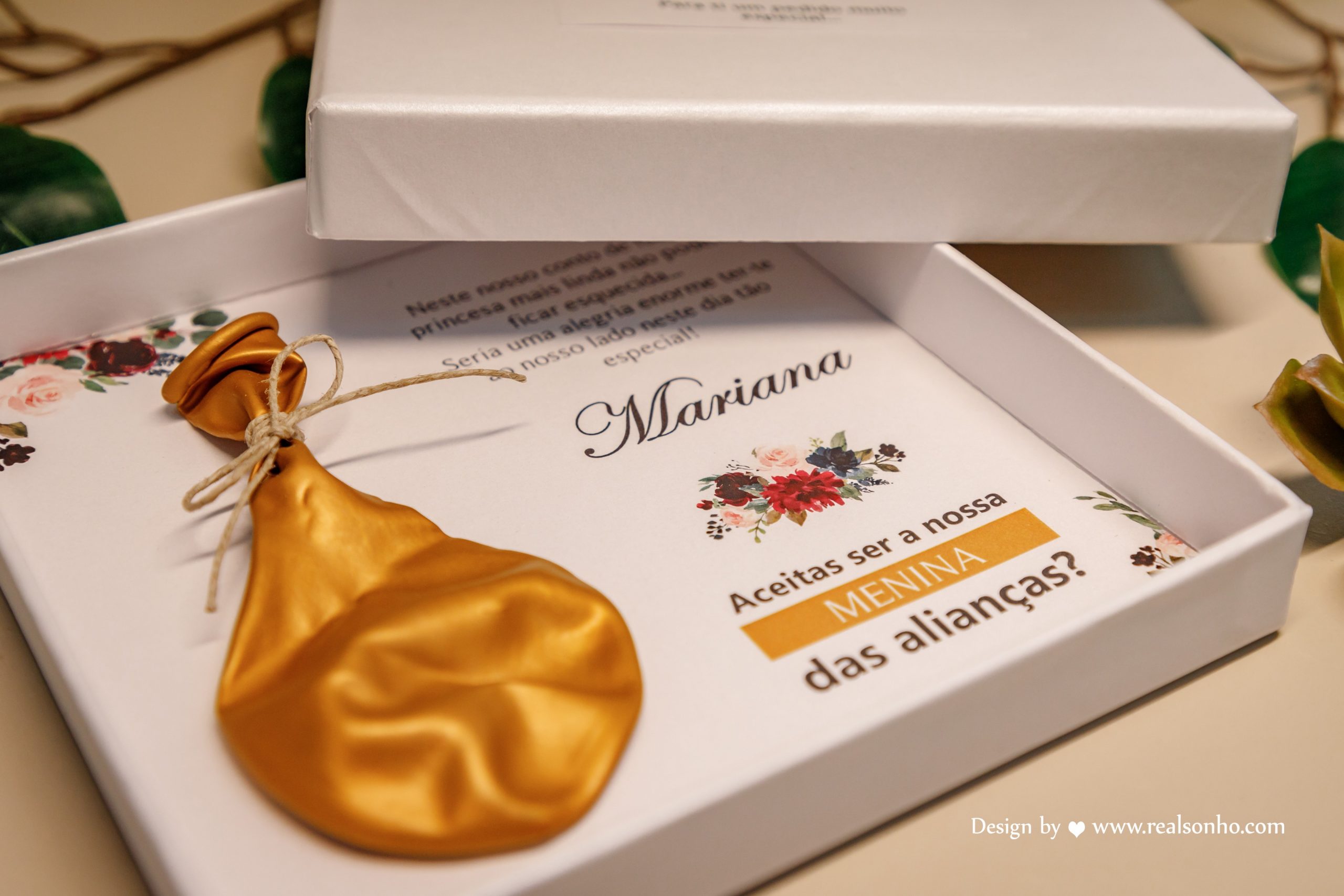 Decoração da caixa: conforme imagem, no entanto será personalizada em função da coleção que escolher ( o convite da imagem está com o design da coleção Burgundy)