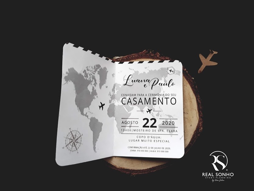 Dimensão do convite: 10,5 x 14,5 cm (fechado) 14,5 x 21 cm (aberto)